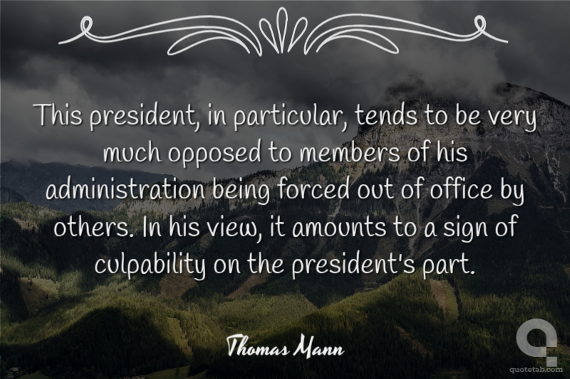 This president, in particular, tends to be very much opposed to members of his administration being forced out of office by others. In his view, it amounts to a sign of culpability on the president's part.