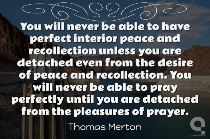 You will never be able to have perfect interior peace and recollection unless you are detached even from the desire of peace and recollection. You will never be able to pray perfectly until you are detached from the pleasures of prayer.