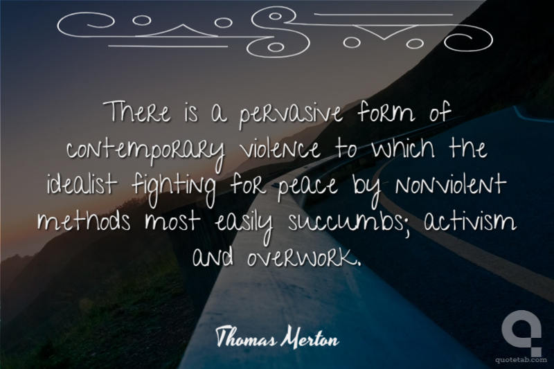 There is a pervasive form of contemporary violence to which the idealist fighting for peace by nonviolent methods most easily succumbs; activism and overwork.