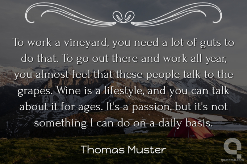 To work a vineyard, you need a lot of guts to do that. To go out there and work all year, you almost feel that these people talk to the grapes. Wine is a lifestyle, and you can talk about it for ages. It's a passion, but it's not something I can do on a daily basis.