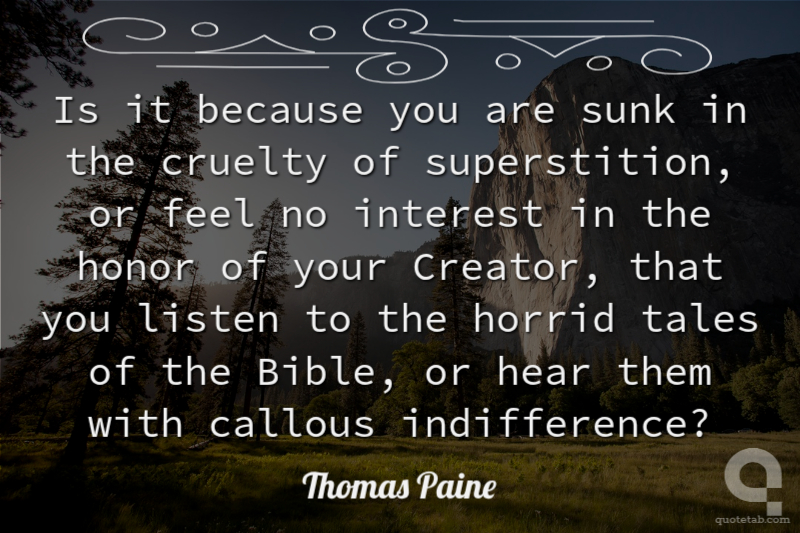 Is it because you are sunk in the cruelty of superstition, or feel no interest in the honor of your Creator, that you listen to the horrid tales of the Bible, or hear them with callous indifference?