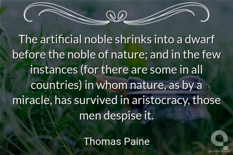 The artificial noble shrinks into a dwarf before the noble of nature; and in the few instances (for there are some in all countries) in whom nature, as by a miracle, has survived in aristocracy, those men despise it.