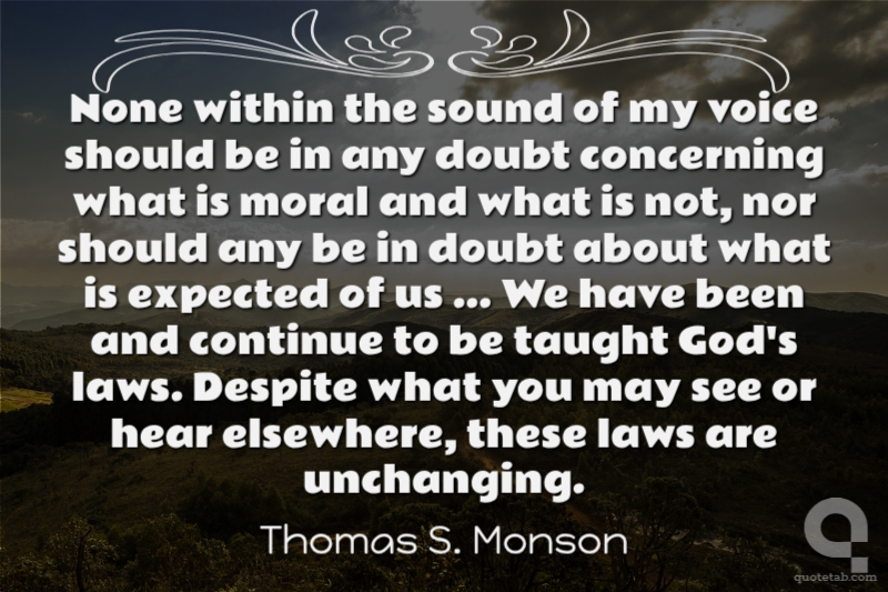None within the sound of my voice should be in any doubt concerning what is moral and what is not, nor should any be in doubt about what is expected of us ... We have been and continue to be taught God's laws. Despite what you may see or hear elsewhere, these laws are unchanging.