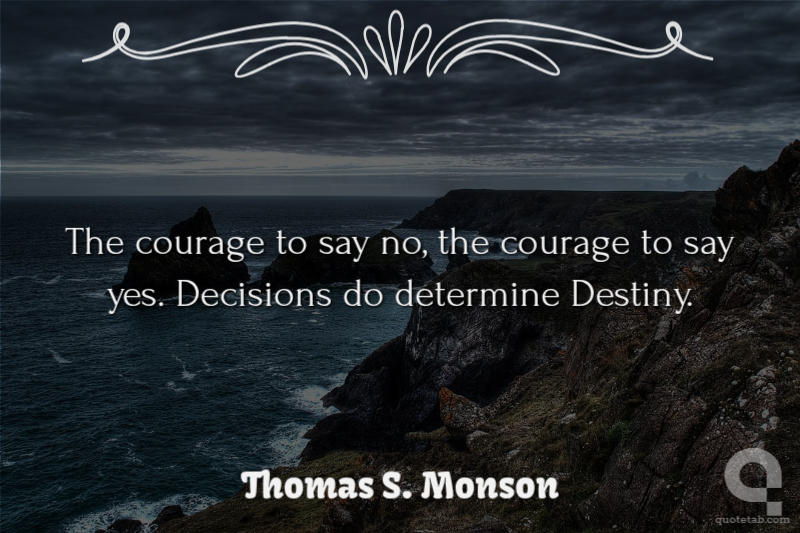 Life's journey is not traveled on a freeway devoid of obstacles, pitfalls, and snares. Rather, it is a pathway marked by forks and turnings. Decisions are constantly before us. To make them wisely, courage is needed: the courage to say, 'No,' the courage to say, 'Yes.' Decisions do determine destiny. The call for courage comes constantly to each of us. It has ever been so, and so shall it ever be.