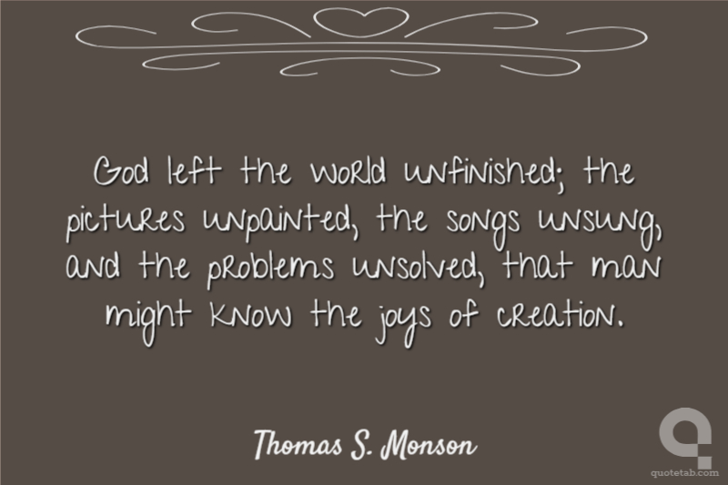 God left the world unfinished; the pictures unpainted, the songs unsung, and the problems unsolved, that man might know the joys of creation.