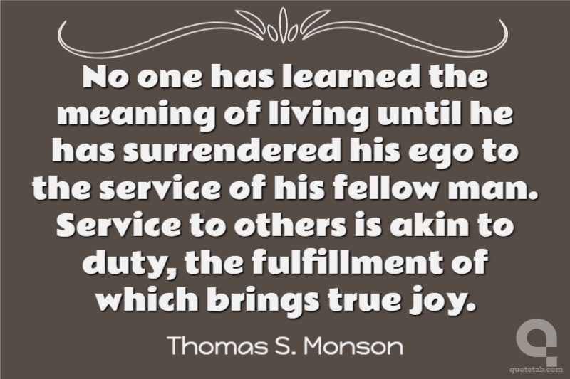 No one has learned the meaning of living until he has surrendered his ego to the service of his fellow man. Service to others is akin to duty, the fulfillment of which brings true joy.