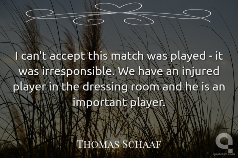 I can't accept this match was played - it was irresponsible. We have an injured player in the dressing room and he is an important player.