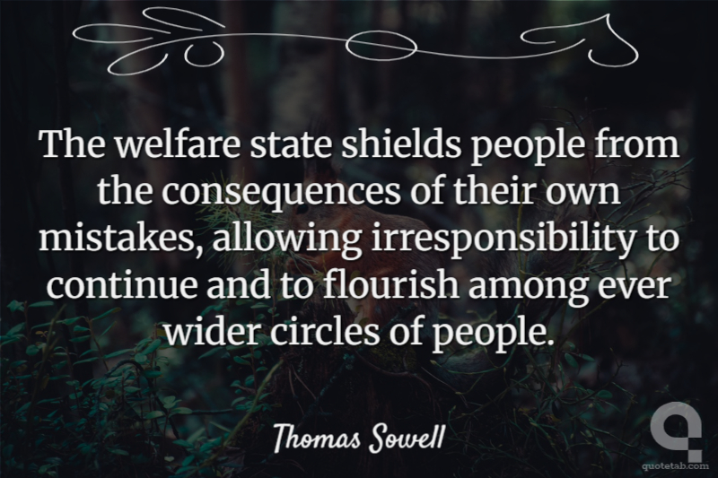 The welfare state shields people from the consequences of their own mistakes, allowing irresponsibility to continue and to flourish among ever wider circles of people.