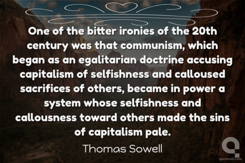 One of the bitter ironies of the 20th century was that communism, which began as an egalitarian doctrine accusing capitalism of selfishness and calloused sacrifices of others, became in power a system whose selfishness and callousness toward others made the sins of capitalism pale.