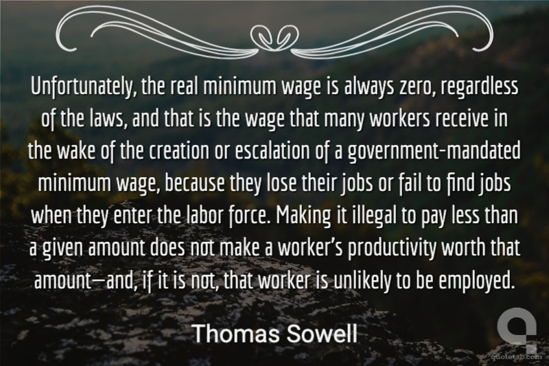 Unfortunately, the real minimum wage is always zero, regardless of the laws, and that is the wage that many workers receive in the wake of the creation or escalation of a government-mandated minimum wage, because they lose their jobs or fail to find jobs when they enter the labor force. Making it illegal to pay less than a given amount does not make a worker’s productivity worth that amount—and, if it is not, that worker is unlikely to be employed.