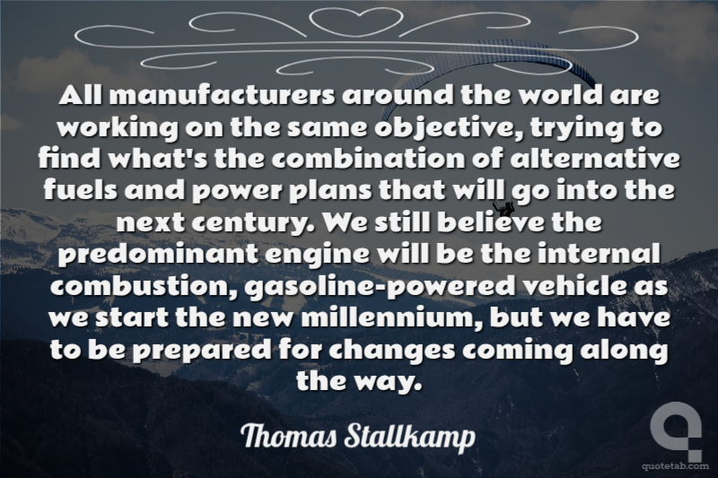 All manufacturers around the world are working on the same objective, trying to find what's the combination of alternative fuels and power plans that will go into the next century. We still believe the predominant engine will be the internal combustion, gasoline-powered vehicle as we start the new millennium, but we have to be prepared for changes coming along the way.