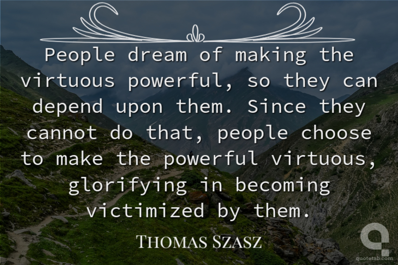 People dream of making the virtuous powerful, so they can depend upon them. Since they cannot do that, people choose to make the powerful virtuous, glorifying in becoming victimized by them.