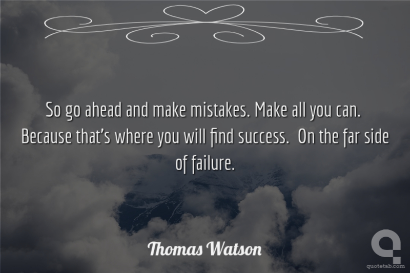 So go ahead and make mistakes. Make all you can. Because that's where you will find success. On the far side of failure.
