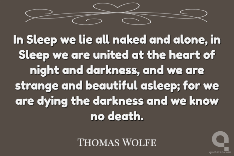 In Sleep we lie all naked and alone, in Sleep we are united at the heart of night and darkness, and we are strange and beautiful asleep; for we are dying the darkness and we know no death.