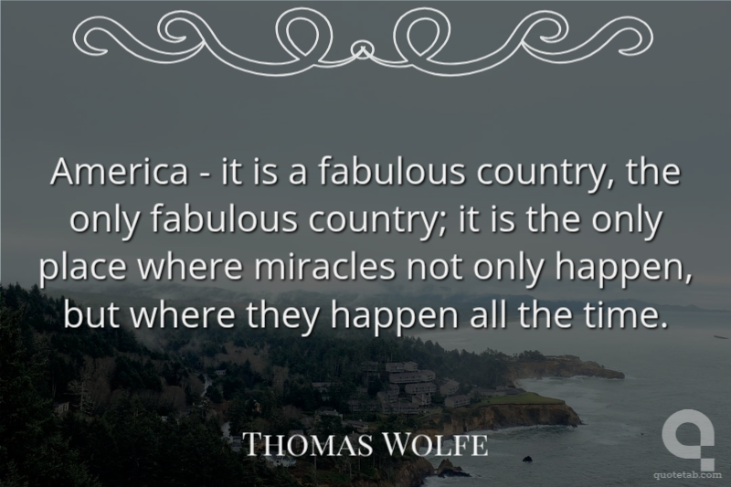 America - it is a fabulous country, the only fabulous country; it is the only place where miracles not only happen, but where they happen all the time.