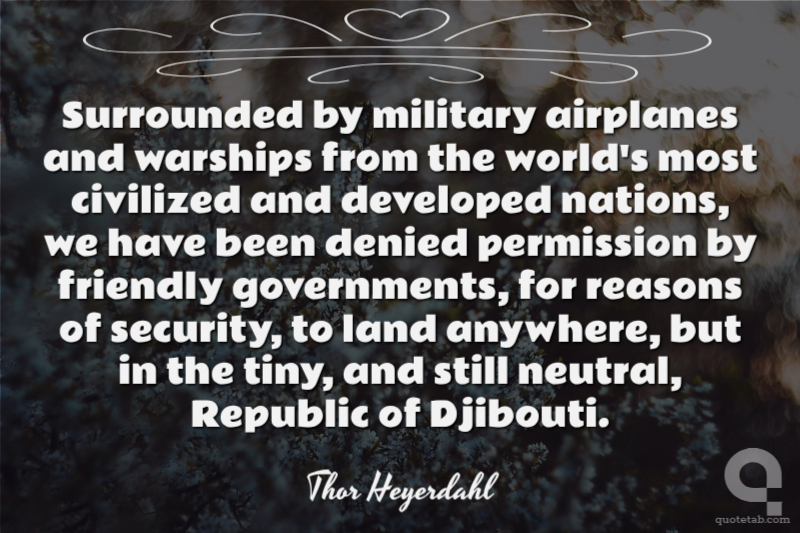 Surrounded by military airplanes and warships from the world's most civilized and developed nations, we have been denied permission by friendly governments, for reasons of security, to land anywhere, but in the tiny, and still neutral, Republic of Djibouti.