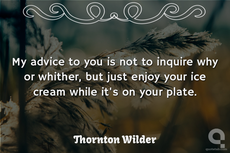 My advice to you is not to inquire why or whither, but just enjoy your ice cream while it's on your plate.