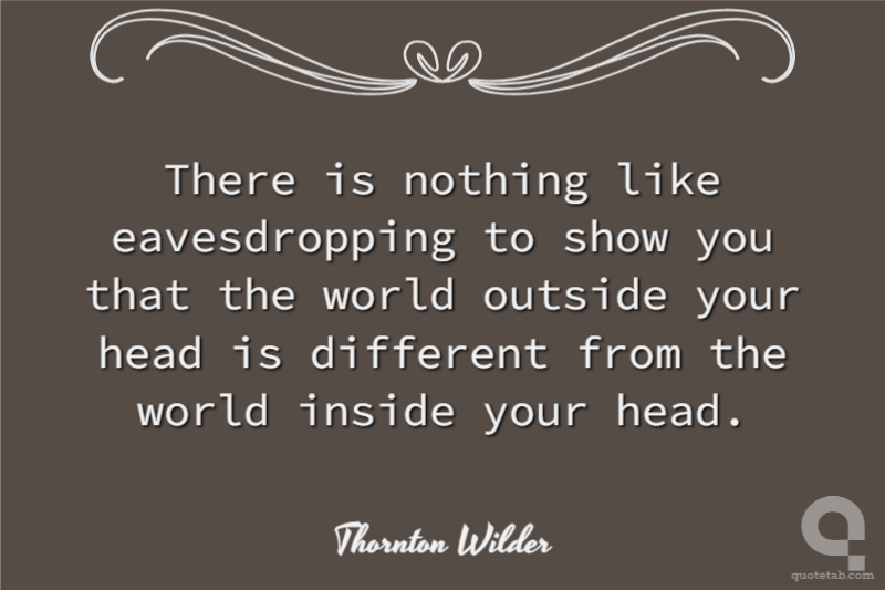 There is nothing like eavesdropping to show you that the world outside your head is different from the world inside your head.