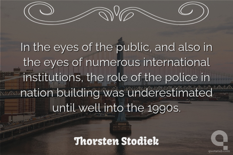 In the eyes of the public, and also in the eyes of numerous international institutions, the role of the police in nation building was underestimated until well into the 1990s.