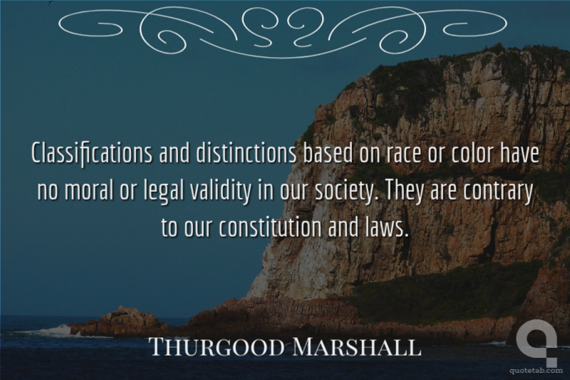 Classifications and distinctions based on race or color have no moral or legal validity in our society. They are contrary to our constitution and laws.
