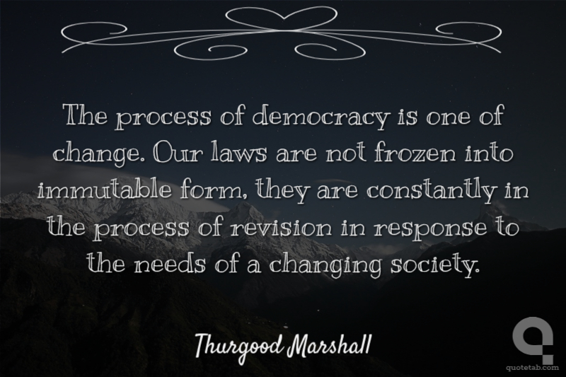 The process of democracy is one of change. Our laws are not frozen into immutable form, they are constantly in the process of revision in response to the needs of a changing society.