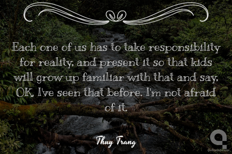 Each one of us has to take responsibility for reality, and present it so that kids will grow up familiar with that and say, OK. I've seen that before. I'm not afraid of it.