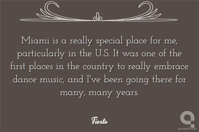 Miami is a really special place for me, particularly in the U.S. It was one of the first places in the country to really embrace dance music, and I've been going there for many, many years.