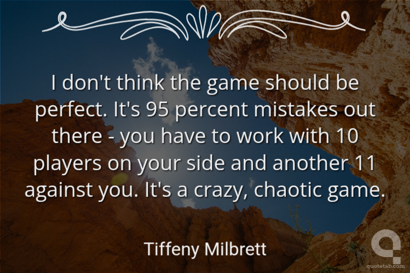 I don't think the game should be perfect. It's 95 percent mistakes out there - you have to work with 10 players on your side and another 11 against you. It's a crazy, chaotic game.