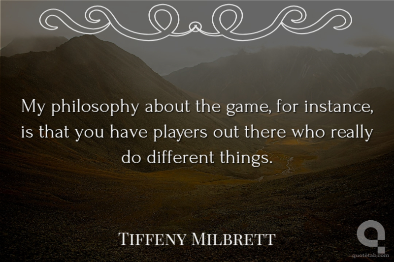My philosophy about the game, for instance, is that you have players out there who really do different things.