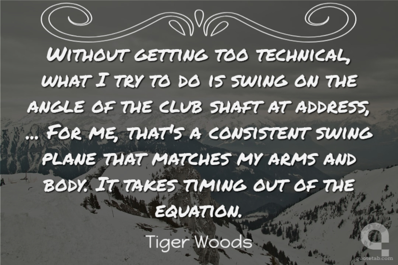 Without getting too technical, what I try to do is swing on the angle of the club shaft at address, ... For me, that's a consistent swing plane that matches my arms and body. It takes timing out of the equation.