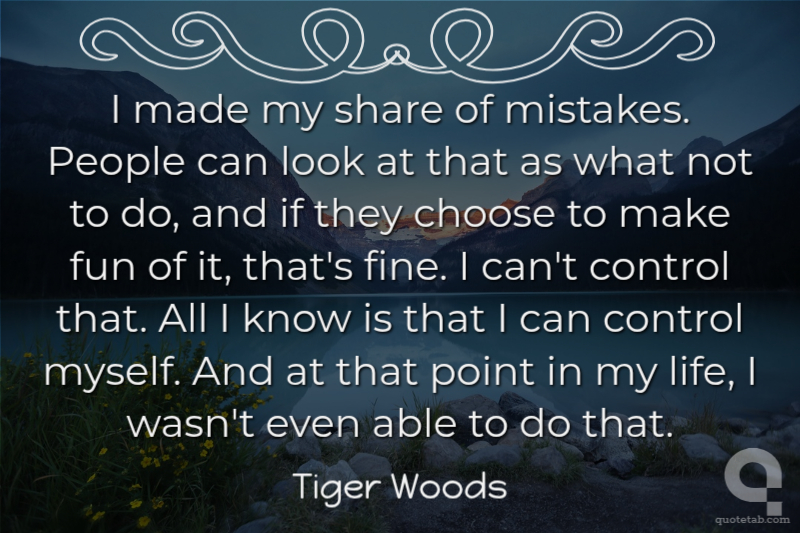 I made my share of mistakes. People can look at that as what not to do, and if they choose to make fun of it, that's fine. I can't control that. All I know is that I can control myself. And at that point in my life, I wasn't even able to do that.