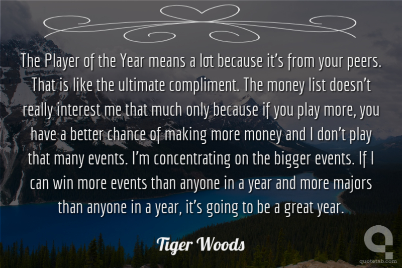 The Player of the Year means a lot because it's from your peers. That is like the ultimate compliment. The money list doesn't really interest me that much only because if you play more, you have a better chance of making more money and I don't play that many events. I'm concentrating on the bigger events. If I can win more events than anyone in a year and more majors than anyone in a year, it's going to be a great year.