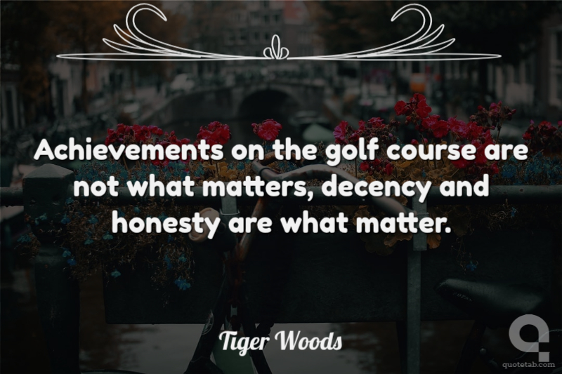 Achievements on the golf course are not what matters, decency and honesty are what matter.