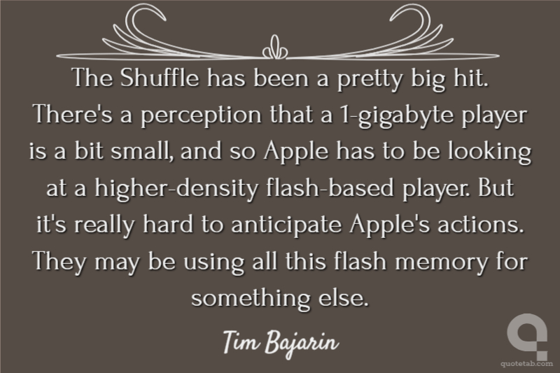The Shuffle has been a pretty big hit. There's a perception that a 1-gigabyte player is a bit small, and so Apple has to be looking at a higher-density flash-based player. But it's really hard to anticipate Apple's actions. They may be using all this flash memory for something else.