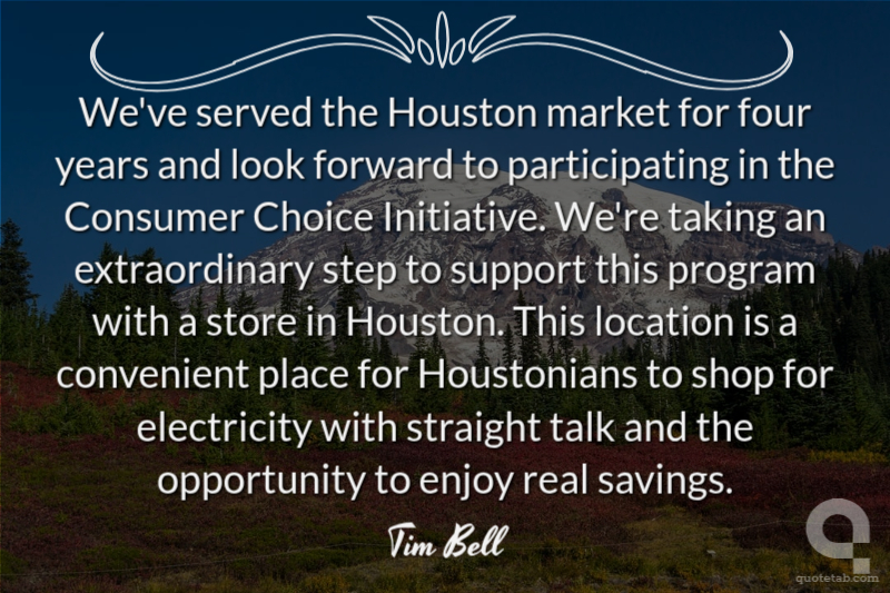 We've served the Houston market for four years and look forward to participating in the Consumer Choice Initiative. We're taking an extraordinary step to support this program with a store in Houston. This location is a convenient place for Houstonians to shop for electricity with straight talk and the opportunity to enjoy real savings.