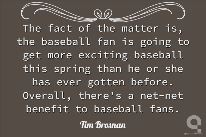 The fact of the matter is, the baseball fan is going to get more exciting baseball this spring than he or she has ever gotten before. Overall, there's a net-net benefit to baseball fans.