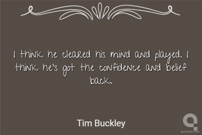 I think he cleared his mind and played. I think he's got the confidence and belief back.