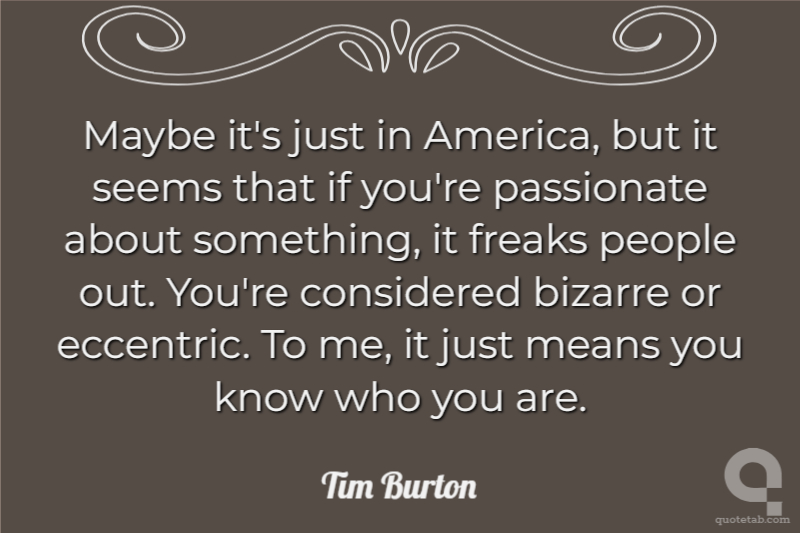 Maybe it's just in America, but it seems that if you're passionate about something, it freaks people out. You're considered bizarre or eccentric. To me, it just means you know who you are.