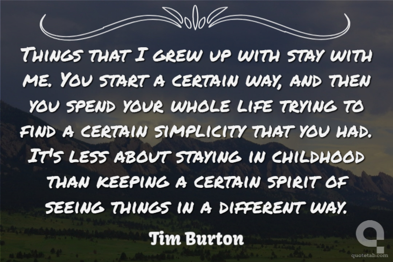 Things that I grew up with stay with me. You start a certain way, and then you spend your whole life trying to find a certain simplicity that you had. It's less about staying in childhood than keeping a certain spirit of seeing things in a different way.