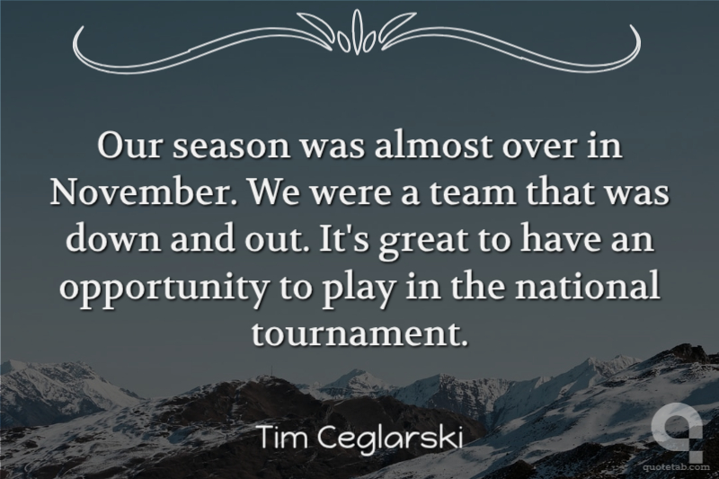 Our season was almost over in November. We were a team that was down and out. It's great to have an opportunity to play in the national tournament.