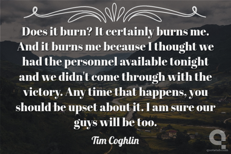 Does it burn? It certainly burns me. And it burns me because I thought we had the personnel available tonight and we didn't come through with the victory. Any time that happens, you should be upset about it. I am sure our guys will be too.