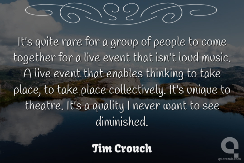 It's quite rare for a group of people to come together for a live event that isn't loud music. A live event that enables thinking to take place, to take place collectively. It's unique to theatre. It's a quality I never want to see diminished.