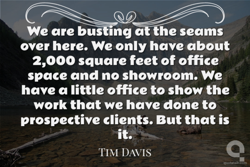 We are busting at the seams over here. We only have about 2,000 square feet of office space and no showroom. We have a little office to show the work that we have done to prospective clients. But that is it.