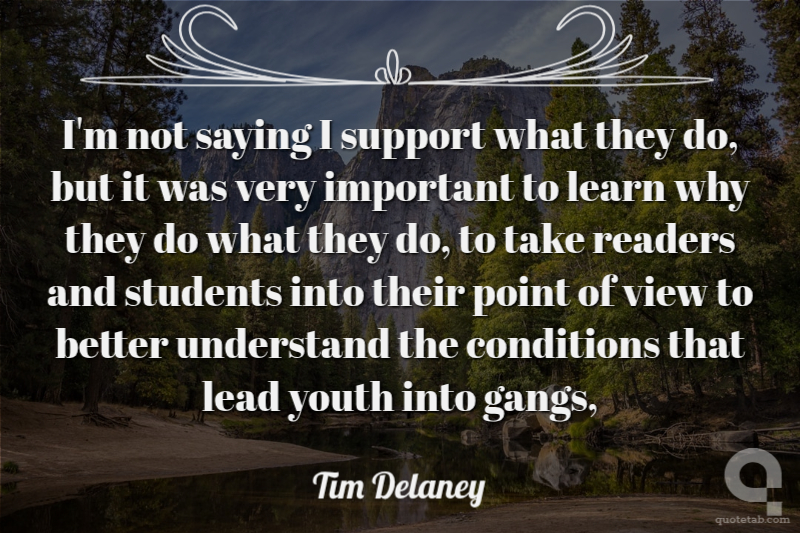 I'm not saying I support what they do, but it was very important to learn why they do what they do, to take readers and students into their point of view to better understand the conditions that lead youth into gangs,