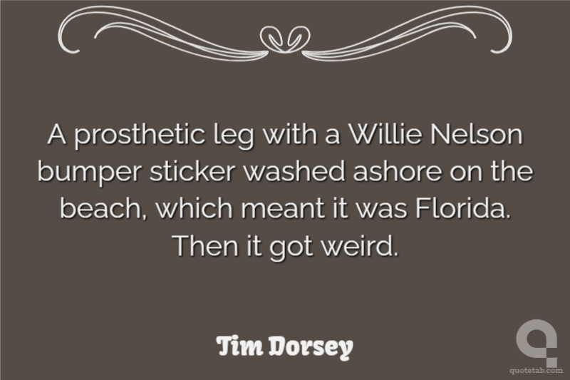 A prosthetic leg with a Willie Nelson bumper sticker washed ashore on the beach, which meant it was Florida. Then it got weird.