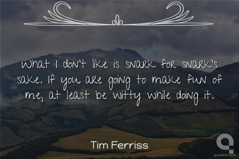 What I don't like is snark for snark's sake. If you are going to make fun of me, at least be witty while doing it.