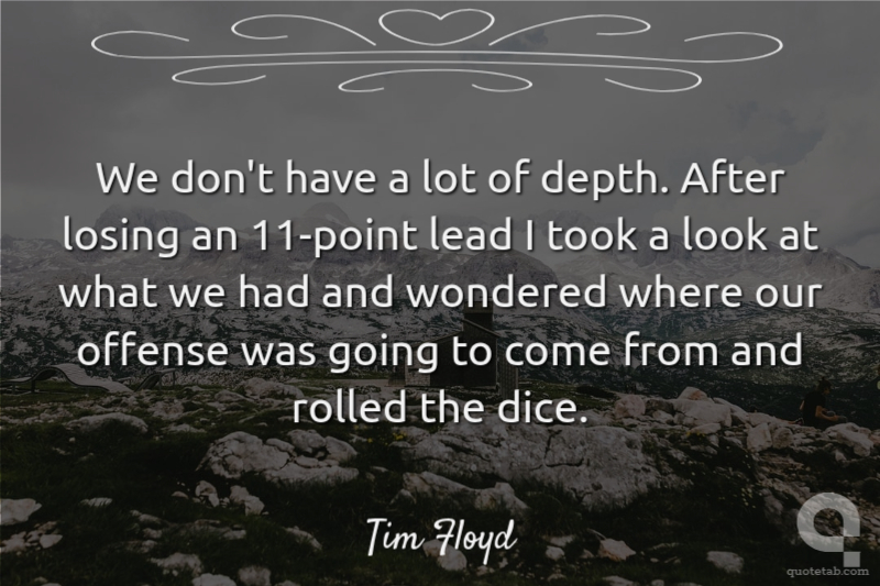 We don't have a lot of depth. After losing an 11-point lead I took a look at what we had and wondered where our offense was going to come from and rolled the dice.