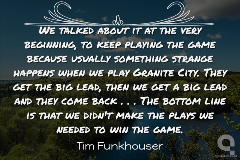 We talked about it at the very beginning, to keep playing the game because usually something strange happens when we play Granite City. They get the big lead, then we get a big lead and they come back . . . The bottom line is that we didn't make the plays we needed to win the game.