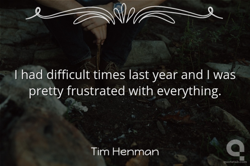 I had difficult times last year and I was pretty frustrated with everything.