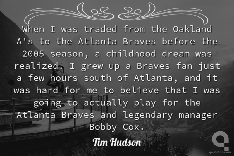 When I was traded from the Oakland A's to the Atlanta Braves before the 2005 season, a childhood dream was realized. I grew up a Braves fan just a few hours south of Atlanta, and it was hard for me to believe that I was going to actually play for the Atlanta Braves and legendary manager Bobby Cox.